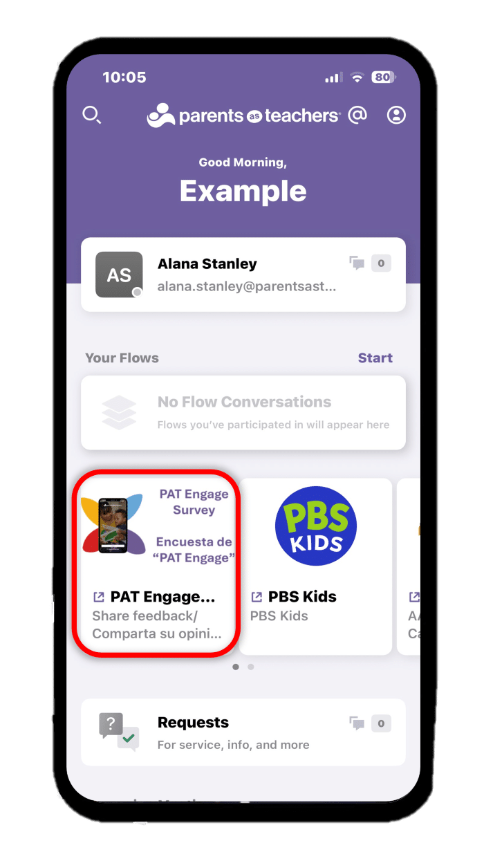 Accessing the PAT Engage Satisfaction Survey is now easier for families, with a new Quick Link added to the home screen of the app when they log in. We encourage affiliates to highlight this new Quick Link and invite families to complete the survey. Whether during a visit or through a message in the app, a brief prompt can help draw attention to the new Quick Link.